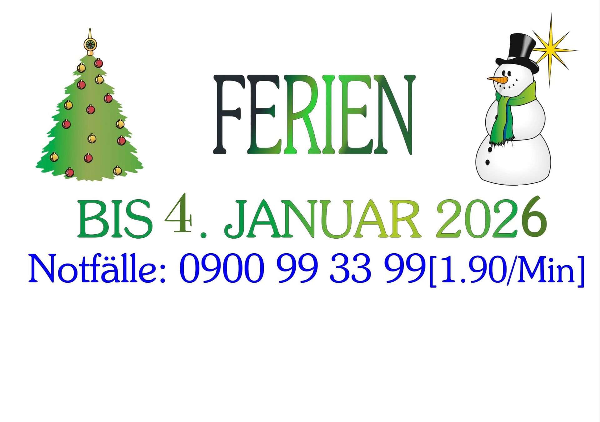 *Dienstag und Mittwoch bitten wir Sie aufgrund der Chirurgie erst ab 11:20 Uhr anzurufen und für Einkäufe an diesen Tagen erst am Nachmittag vorbei zu kommen.
